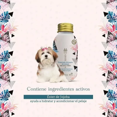 Extracto de Jojoba: Hidratación profunda y nutritiva que penetra piel y pelaje, restaurando sequedad.