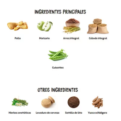 ✔ Fácil digestión: Pollo fresco (10%), arroz integral y prebióticos naturales que favorecen la flora intestinal.