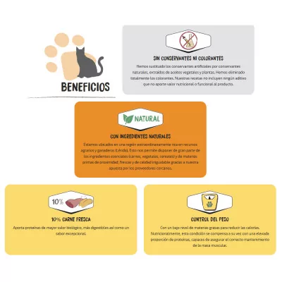 Los gatos esterilizados tienen tendencia al sobrepeso. Ownat Classic Sterilized está especialmente diseñado para controlar el aumento de peso después de la esterilización. Es un alimento completo y equilibrado de primera calidad, que utiliza ingredientes naturales y carne fresca para una nutrición óptima. La combinación de sus componentes satisface todas las necesidades energéticas y nutricionales de los gatos esterilizados, moderando en nivel de grasas para ayudarles a mantenerse en su peso.