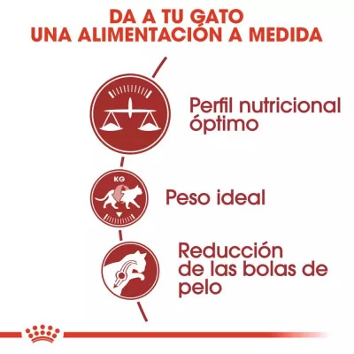 Reducción de Bolas de Pelo: Fibras alimentarias específicas que ayudan a eliminar el pelo ingerido, minimizando la formación de bolas de pelo. Esto es especialmente importante para los gatos que se acicalan con frecuencia, ya que previene posibles obstrucciones en el tracto digestivo.