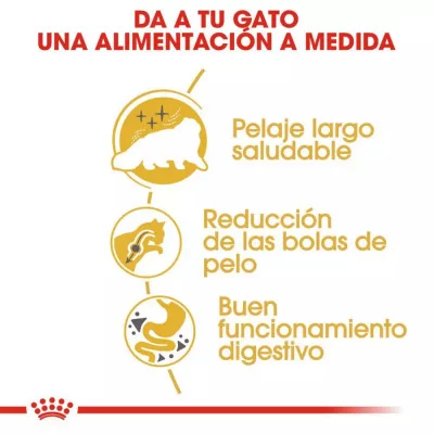 El Persian Adult de ROYAL CANIN® está formulado para satisfacer las necesidades específicas de los gatos persas adultos a partir de los 12 meses, conocidos por su pelaje largo, denso y su delicada piel. Este alimento ofrece un complejo exclusivo de nutrientes que ayuda a mantener la función barrera de la piel, favoreciendo la salud tanto de la piel como del pelaje, además de contribuir a la belleza del pelo, mientras previene la formación de bolas de pelo y promueve una digestión saludable.
