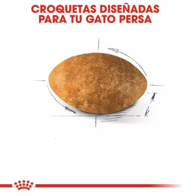 Diseño de Croqueta Adaptado: La croqueta con forma de almendra y una superficie de contacto óptima facilita la prensión y la masticación, adaptándose perfectamente a la mandíbula braquicefálica de los gatos persas.