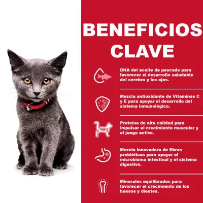 Hill's Science Diet Indoor Kitten es la nutrición perfecta para los gatitos que pasan la mayor parte de su tiempo en interiores. Formulado para apoyar un crecimiento óptimo desde el destete hasta los 12 meses, así como para gatas gestantes o lactantes, este alimento garantiza que los gatitos reciban todos los nutrientes necesarios para un inicio saludable en la vida. Su receta incluye ingredientes naturales de alta calidad que aseguran una digestión fácil, contribuyendo a la limpieza eficiente de la caja de arena.