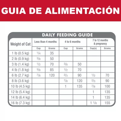 El DHA derivado del aceite de pescado es esencial para el desarrollo del cerebro y la visión, mientras que los minerales equilibrados promueven el fortalecimiento de los huesos y dientes. Hill's Science Diet Indoor Kitten también está compuesto por proteínas de alta calidad que fomentan un crecimiento muscular óptimo y ácidos grasos omega-6 y vitaminas que mantienen un pelaje sano y brillante.