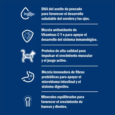 Gracias a su contenido en DHA derivado del aceite de pescado, fomenta un óptimo desarrollo cerebral y visual. Sus proteínas de alta calidad contribuyen a la formación de músculos magros y saludables, mientras que los minerales equilibrados aseguran huesos y dientes fuertes. Es un alimento sabroso y fácil de digerir que asegura un crecimiento robusto en sus etapas críticas de desarrollo.