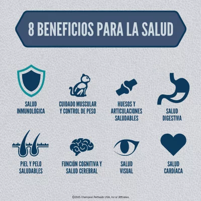 Piel y pelaje saludables: omegas 3 y 6 provenientes de pescado salvaje y aves.