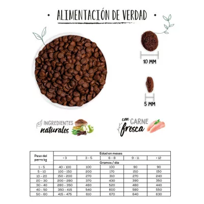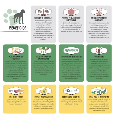 Especialmente indicado para aquellos cachorros (desde los 2-3 meses hasta el final de su crecimiento) que presentan sensibilidad o intolerancias digestivas o cutáneas. Con un 40% de cordero fresco, ofrece un aporte energético elevado y rico en proteínas para dar respuesta a los elevados requerimientos de su organismo en desarrollo. También tiene una proporción equilibrada de calcio y fósforo para un óptimo desarrollo de los huesos y los dientes. Con un alimento como este te aseguras de que tu cachorro crezca fuerte y sano.