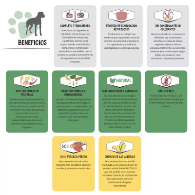 Ownat Grain Free Hypoallergenic Fish es un alimento para perros adultos de todas las razas, que presentan intolerancias a las carnes de pollo, ternera o cordero. Una dieta hipoalergénica, con un 30% de pescado fresco que les permite aprovechar los nutrientes al máximo, fortalecer el sistema inmunológico, y potenciar todos sus escudos. Presenta una dieta con un bajo poder alergénico, que además brinda un complejo de antioxidantes naturales que retrasan el envejecimiento celular.