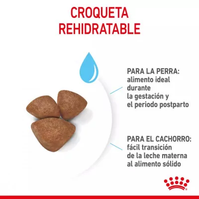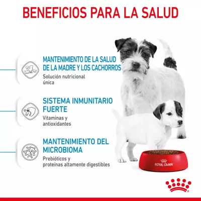 Formulado para perras pequeñas en el periodo de gestación y periodo postparto, para los cachorros en periodo de destete, proporcionando la energía necesaria para un desarrollo saludable.