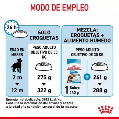 Maxi Puppy de ROYAL CANIN® ha sido especialmente formulado para satisfacer las necesidades nutricionales de los cachorros de razas grandes durante su etapa de crecimiento. Este alimento es ideal para cachorros de 2 a 15 meses de edad que alcanzarán un peso adulto de entre 26 y 44 kg, brindándoles los nutrientes esenciales para un desarrollo equilibrado y saludable.
