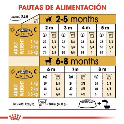 Cuando tu cachorro se acerque a los 8 meses, será el momento de hacer la transición a Royal Canin Chihuahua Adulto, mezclando el nuevo alimento con el actual parai faclitar la transición.