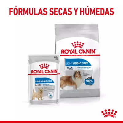 Combina las croquetas de Maxi Light Weight Care con el alimento húmedo Royal Canin Light en Paté, permitiendo combinaciones que enriquecen la experiencia de alimentación de tu perro.