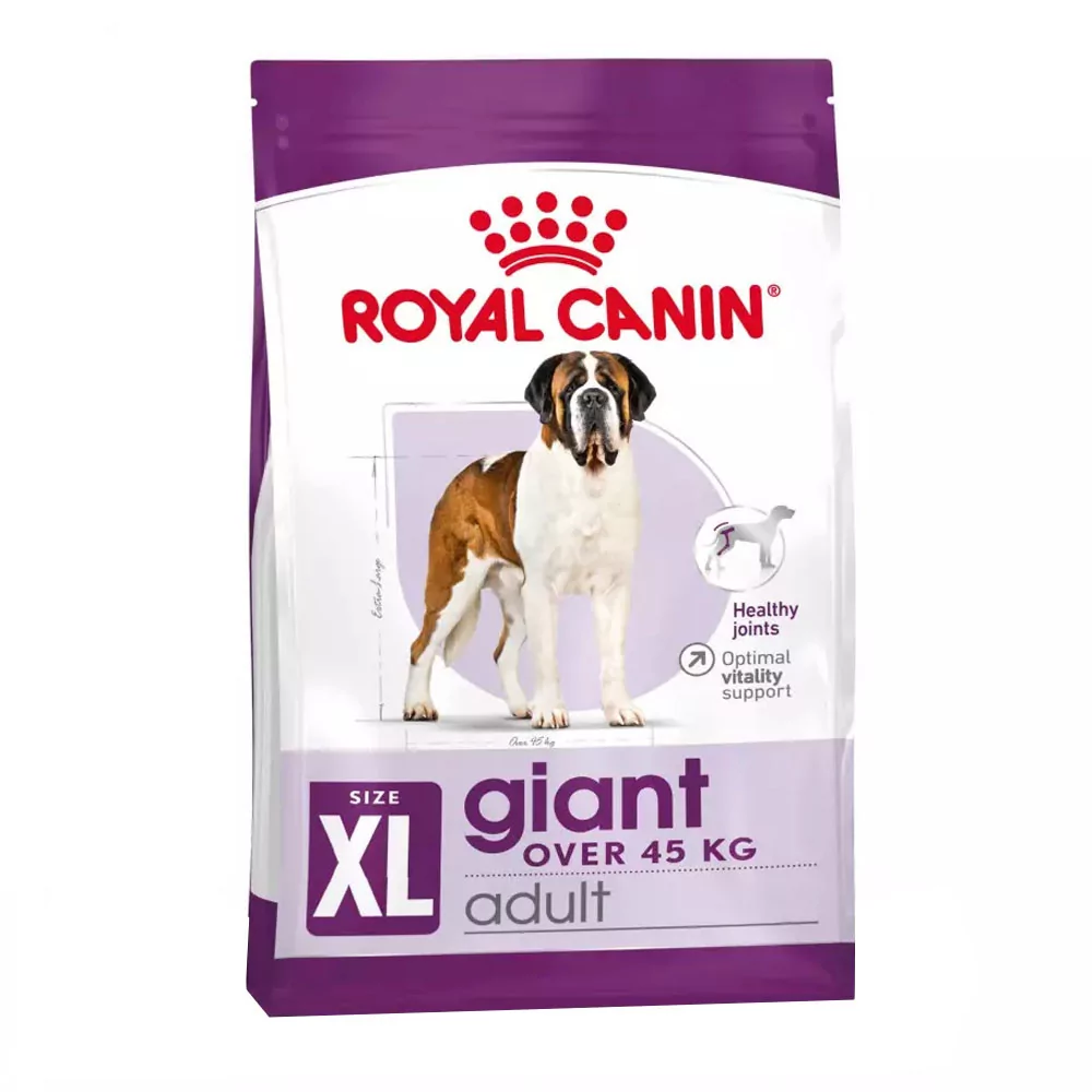 Royal Canin Giant Adult está formulado específicamente para cubrir las necesidades nutricionales de los perros adultos de razas gigantes, cuyo peso supera los 45 kg. Este alimento es ideal para mantener su salud y vitalidad desde los 18/24 meses en adelante, proporcionando el soporte necesario para su tamaño y estilo de vida activo.