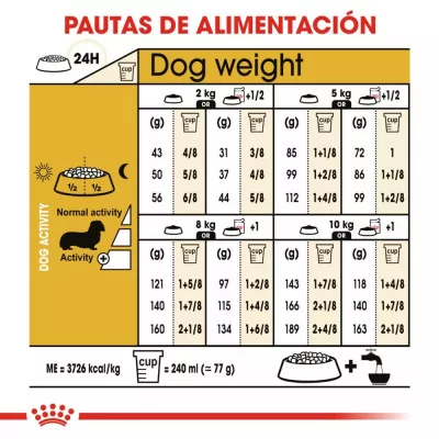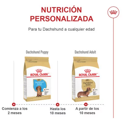 Royal Canin Dachshund Adult está diseñado para satisfacer las necesidades específicas de los Teckel adultos a partir de los 10 menes, una raza conocida por su inteligencia, lealtad y carácter amigable. Este alimento completo fomenta el bienestar general de tu perro, ayudándolo a mantenerse activo y saludable.