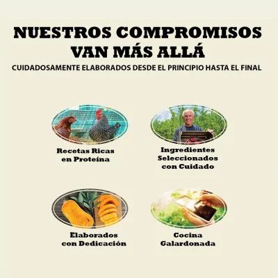 Gracias a su contenido del 60 % de ingredientes animales y 40 % de granos, frutas, verduras y nutrientes, cada croqueta ofrece un equilibrio ideal entre sabor y nutrición.