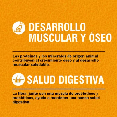 Crecimiento saludable: proteínas de alta calidad que mantienen músculos fuertes y un desarrollo equilibrado.