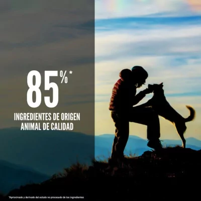 85% ingredientes de origen animal: aporte superior de proteína natural, vitaminas y minerales.