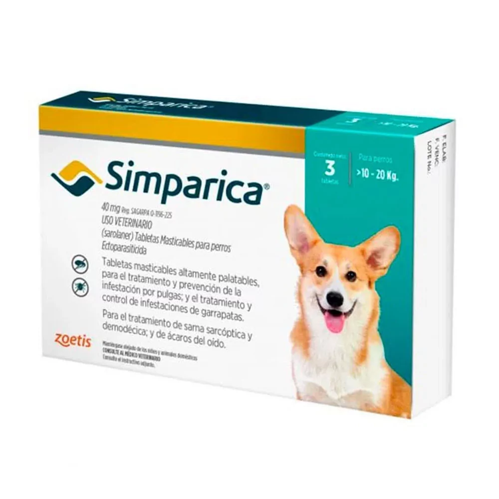 Simparica 40mg para perros 10 a 20Kg x 3 Tab