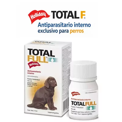 Total F Suspensión Perro 15 ml de Laboratorio Holliday es un antiparasitario interno formulado específicamente para el control y tratamiento de parásitos gastrointestinales en perros.