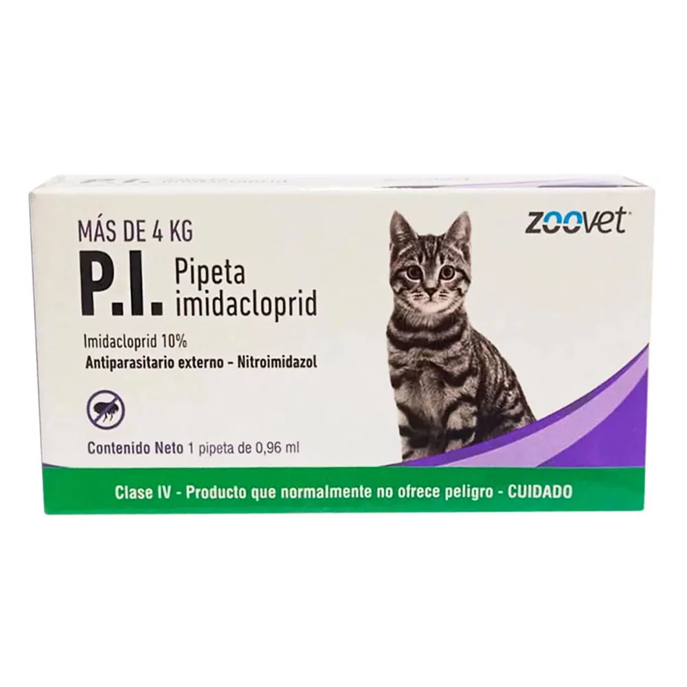 P.I GATOS HASTA DE 4 A 9 KG es un antiparasitario externo, de acción tópica indicado en el tratamiento y control de infestaciones de pulgas en gatos.