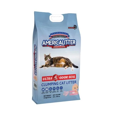 America Litter Baby Powder es una arena sanitaria para gatos con gran poder aglutinante formulada especialmente para mejorar los problemas habituales de las arenas sanitarias (Sellado de olores, aglutinación, polvo, etc.) No tóxica, de bajo impacto ambiental y ecológica.