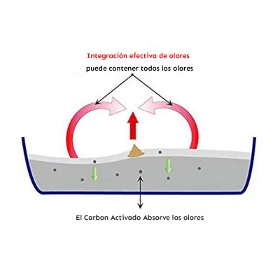Sellado total de olores: El carbón activado, la zeolita y el bicarbonato trabajan en conjunto para neutralizar los olores de orina y heces, incluso en espacios cerrados como departamentos o baños.