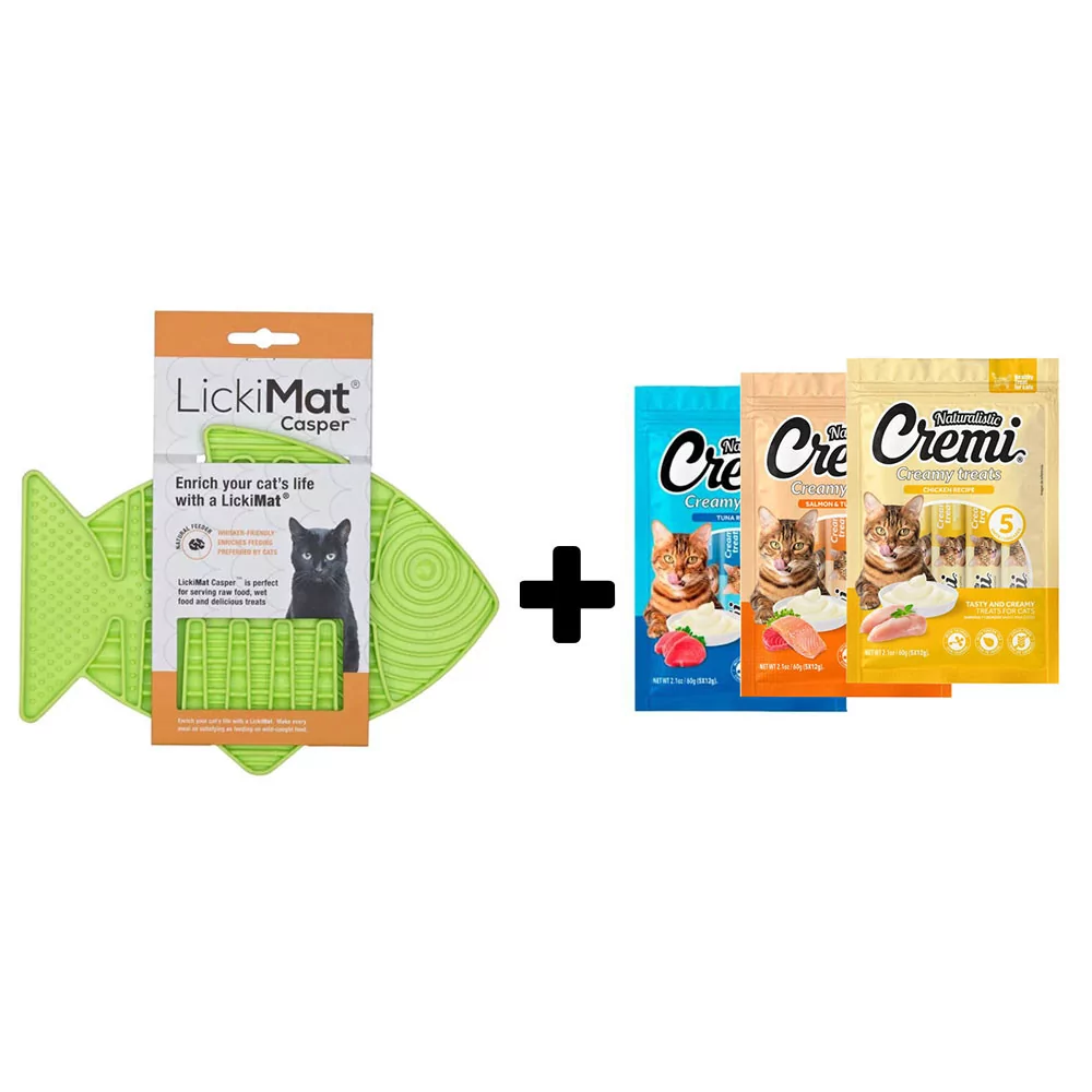 Lickimat Casper Green Cat + 3 Creamy Treats x 5 Und
