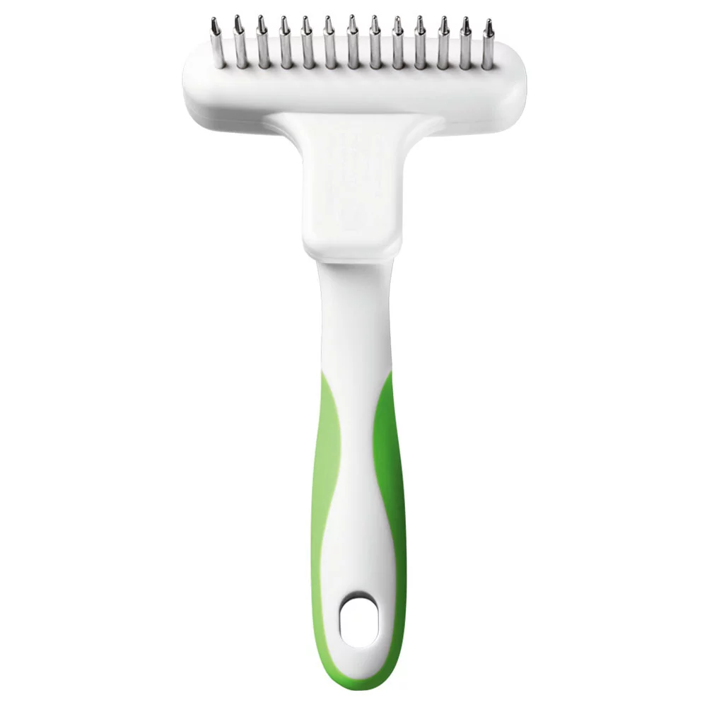 Uso Regular: Utiliza el rastrillo regularmente para mantener el pelaje libre de enredos y reducir el desprendimiento.