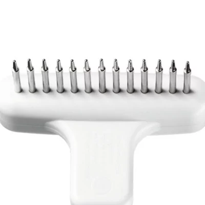Sistema de Dientes Rotativos 360°: Los dientes de acero inoxidable giran 360 grados mientras peinas, reduciendo tirones y molestias, y se ajustan a la forma del cuerpo de tu mascota.