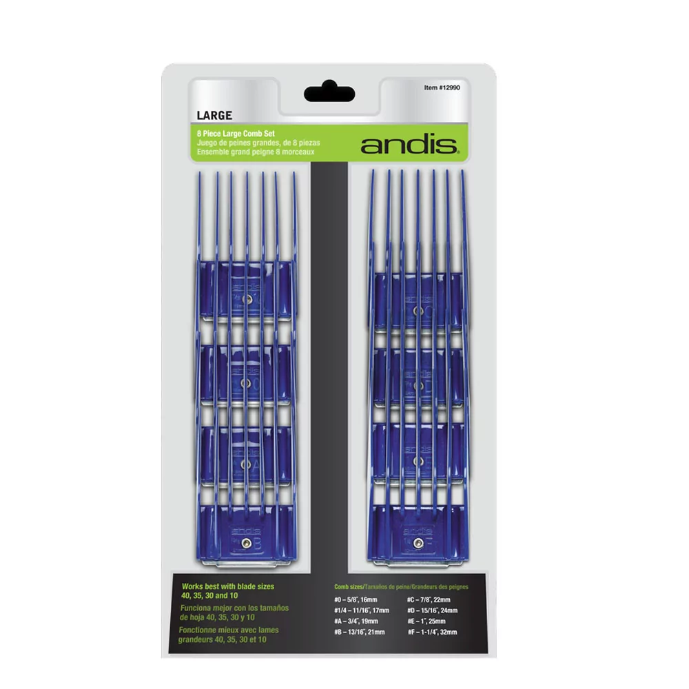 Cada peine de alta calidad se ajusta a las cuchillas desmontables de Andis (tamaño 40, 35, 30 o 10) para un corte seguro y preciso.