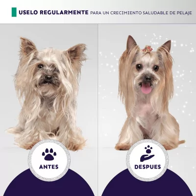 Brillo y Suavidad: Aporta brillo y suavidad al pelaje de tu mascota, dejándolo con una apariencia saludable y bien cuidada.