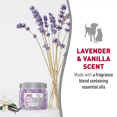 A diferencia de muchos productos que pueden simplemente enmascarar los olores desagradables de las mascotas, las perlas de gel para controlar los olores están formuladas con la tecnología de control de olores OdorCapture 360™ y trabajan para descomponer y ayudar a destruir los olores fuertes de las mascotas. Además, está hecho con una mezcla de fragancias que contiene aceites esenciales para dejar un agradable aroma a lavanda y vainilla.