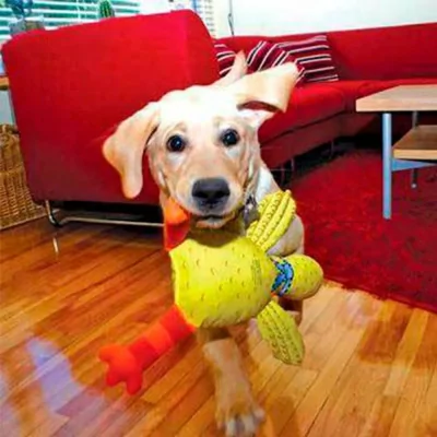 Las alas y los pies se mueven cuando tu perro sacude el juguete.
