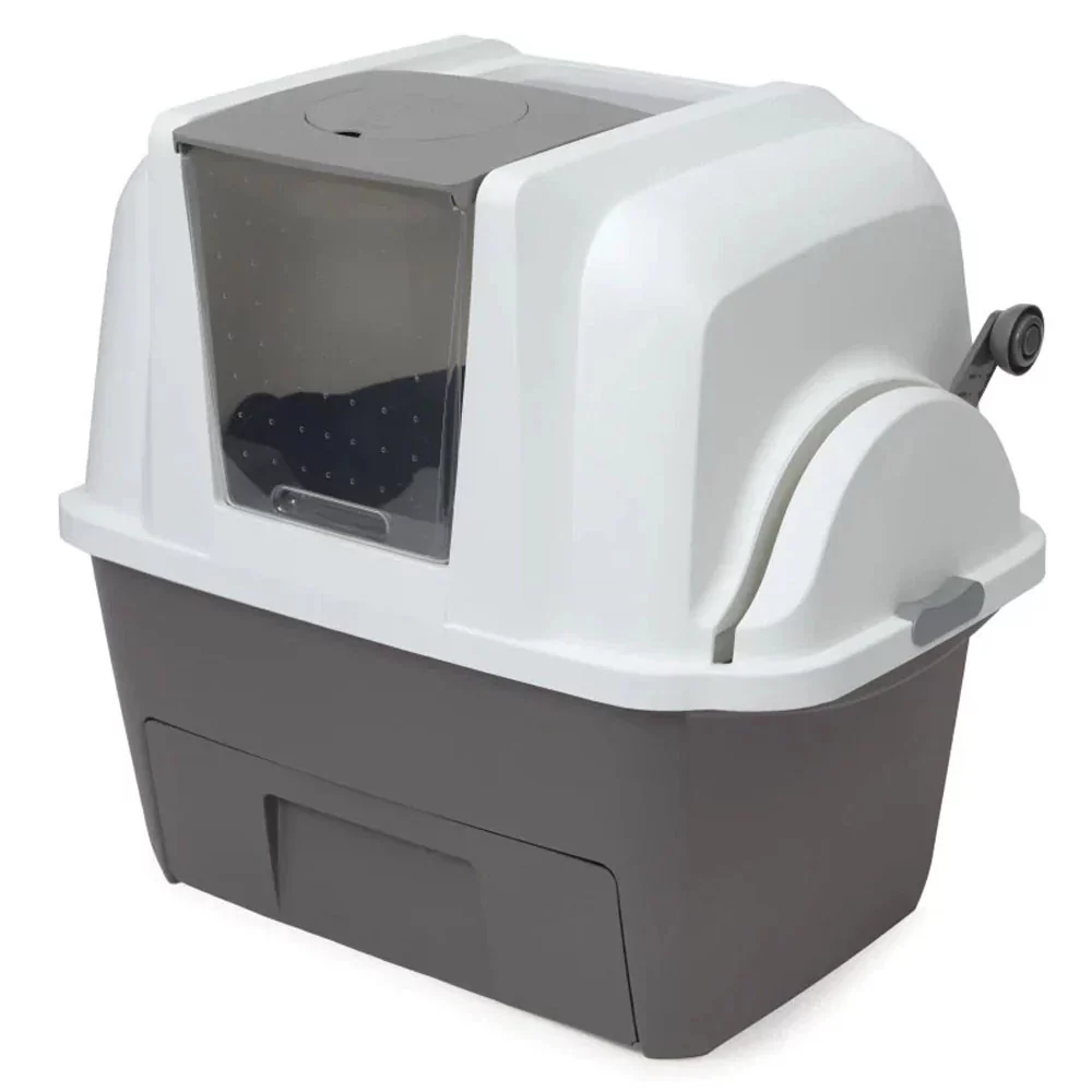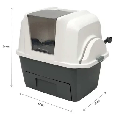 El arenero Catit Smartsift combina tecnología innovadora con diseño práctico para simplificar el mantenimiento del arenero de tu gato. Equipado con una palanca que tamiza y separa los residuos de la arena limpia, este sistema elimina la necesidad de manipular directamente los excrementos, manteniendo un entorno más higiénico y cómodo para ti y tu mascota.