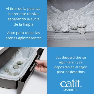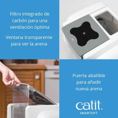 Con el Arenero Catit Smartsift, mejorarás la calidad de vida de tu gato y facilitarás la limpieza diaria, disfrutando de un entorno limpio y sin olores en tu hogar. ¡La solución ideal para dueños exigentes y mascotas felices!