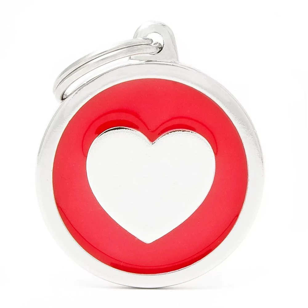 Haz que tu mascota luzca con distinción con la Placa Classic Círculo Grande Rojo con Corazón, una pieza que combina tradición y modernidad. Fabricada en Italia y esmaltada a mano, ofrece un diseño irresistible que nunca pasa de moda. Además de ser un accesorio elegante, brinda seguridad al permitir la personalización con la información de tu mascota en la parte trasera.