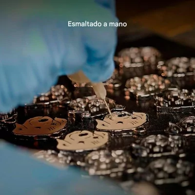 Hecha en Italia, esmaltada a mano y con purpurina para un brillo único.