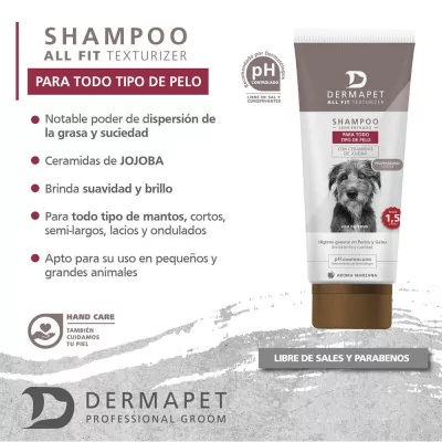 Shampoo Dermapet All Fit Texturizer: Limpieza y Textura Natural para Pelos Cortos, Semi-Largos, Lacios y Ondulados
