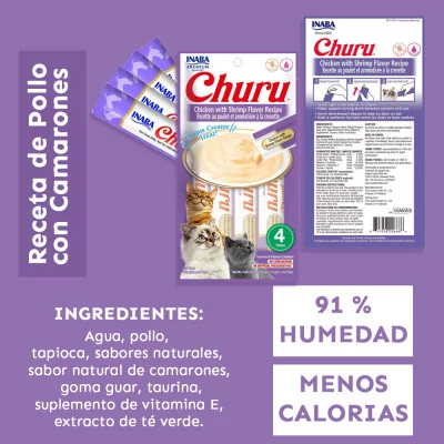 Churu Snack Húmedo de Pollo con Camarones para Gatos Pack x6