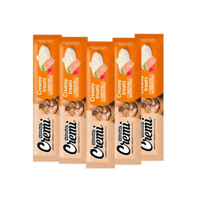 Cremi - Salmón y Atún es un snack cremoso especialmente formulado para gatos de todas las edades, que ofrece una experiencia deliciosa y funcional. Su fórmula combina carne real de pollo y camarones, con taurina (aminoácido esencial para los gatos), y extracto de té verde, conocido por sus propiedades antioxidantes.