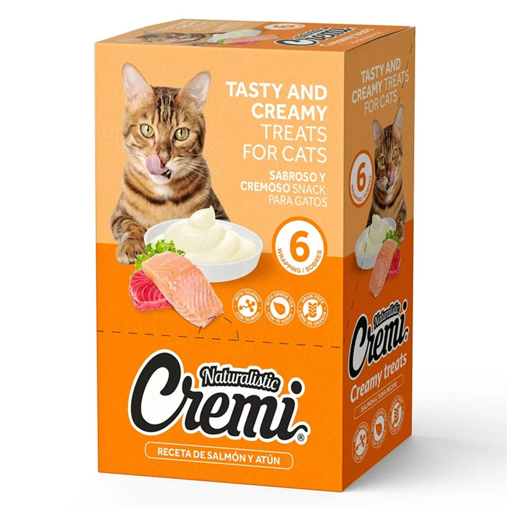 Snack para Gatos Naturalistic Cremi Salmón y Atún 60gr Pack x6 und