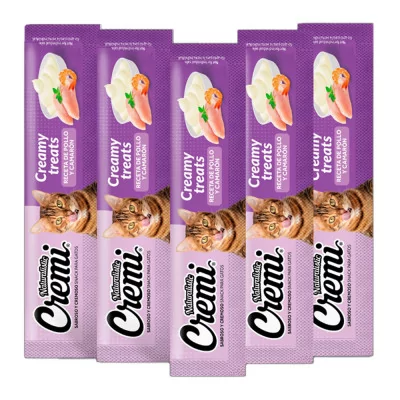 Cremi - Pollo y Camarones es un snack cremoso especialmente formulado para gatos de todas las edades, que ofrece una experiencia deliciosa y funcional. Su fórmula combina carne real de pollo y camarones, con taurina (aminoácido esencial para los gatos), y extracto de té verde, conocido por sus propiedades antioxidantes.