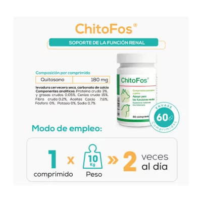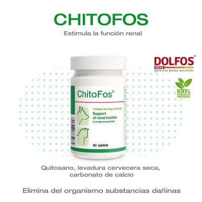 Chitofos es una fórmula desarrollada especialmente para estimular y apoyar la función renal en tus mascotas. Este suplemento combina ingredientes naturales y eficaces que trabajan juntos para promover la salud renal y el bienestar general de perros y gatos.