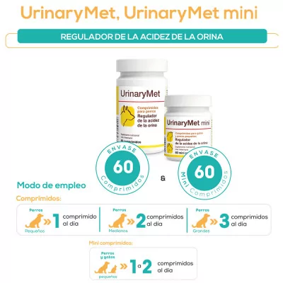 Los problemas urinarios en perros pueden causar molestias y afectar su bienestar. UrinaryMet es un complemento ideal para el tratamiento veterinario en perros con necesidades de control del pH urinario, contribuyendo a mantener una función urinaria saludable.