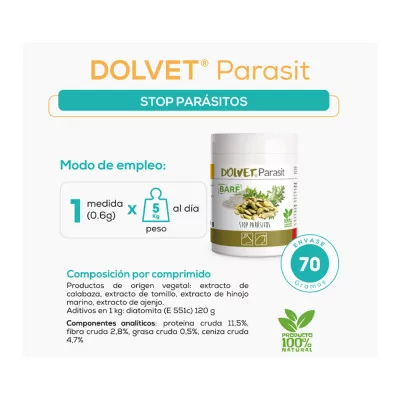 Suplemento Antiparasitario para Mascotas Dolvet Parasit 70gr