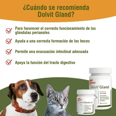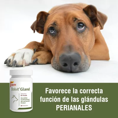 Dolvit Gland es una fórmula para perros con problemas de evacuación de las glándulas anales. Los ingredientes del producto, como extractos de hierbas, esmectita y prebióticos, favorecen el funcionamiento del tracto digestivo y aseguran la correcta formación de heces, lo que permite una defecación adecuada. Dolvit Gland favorece el correcto funcionamiento de las glándulas anales, mejorando el bienestar de los animales.